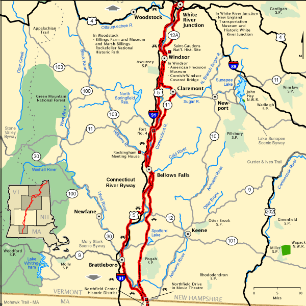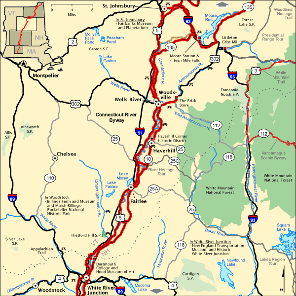 このバイウェイは両州をまたいで指定されており,バーモント州側では「U.S. Route 5」と一部の「Vermont Route 12・Route 142」が主なルートを構成しており,全長約800kmあります。