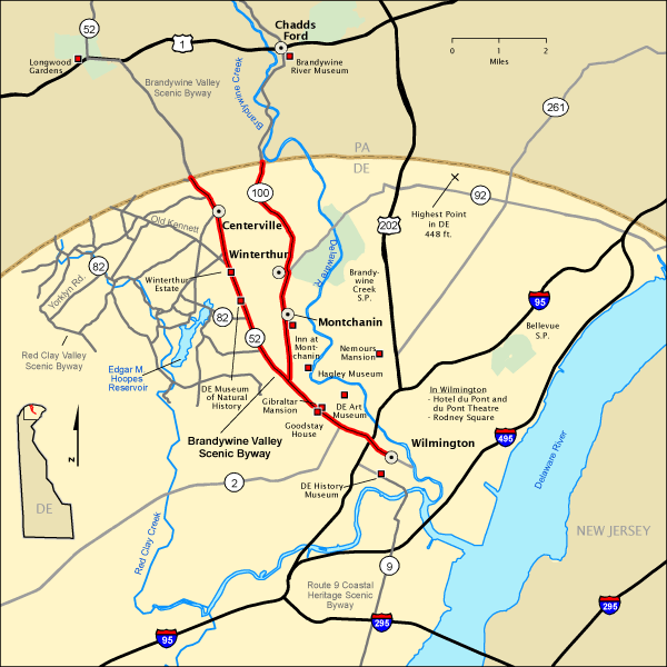 「ブランドワイン・バレー・シーニック・バイウェイ:Brandywine Valley Scenic Byway」 は,デラウェア州とペンシルバニア州にまたがる道路で,ナショナル・シーニック・バイウェイに指定されています。