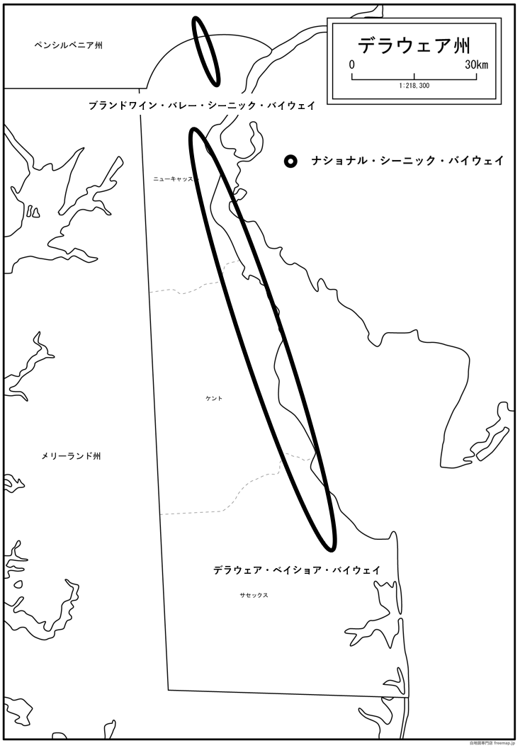 デラウェア州には,指定されたナショナル・シーニック・バイウェイが2つあります。
